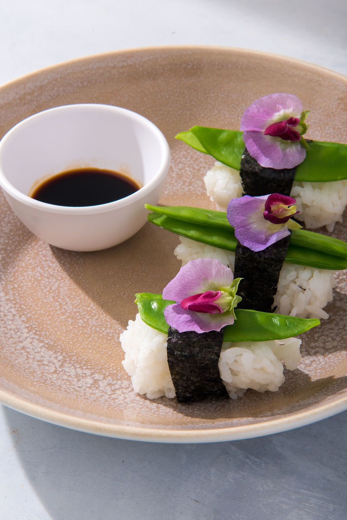 Beyond tamago and shiitake, vegetable-forward sushi isn’t getting the attention it deserves—which means there’s plenty of opportunity for innovation in this category. This recipe includes snow peas, rice, nori, and BLiS Smoked Soy.