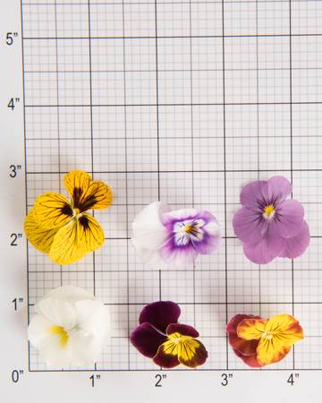 Blueberry cream viola blooms are delicate beauties, cream blossoms brightened up by intense purple and gold centers that add flavor and crunch. These edible flowers offer a crowning touch to salads, desserts and other culinary masterpieces, and edible violas also float beautifully, making them ideal for creative cocktails and mocktails.