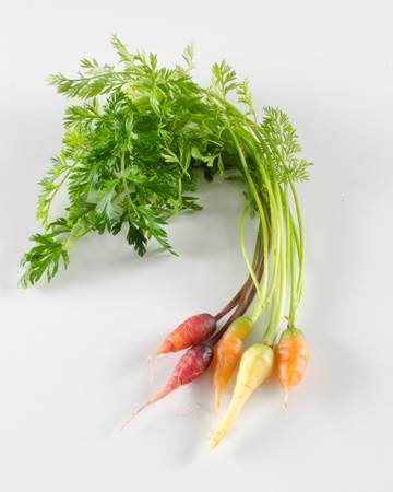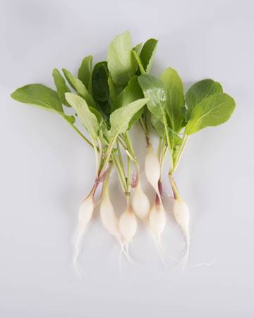 Deliciously petite farm-fresh vegetables in this sampler include a trio of carrots: white, dragon, and long carrots; royal purple and white turnips; a marvelous mixture of radishes: French breakfast, cherry bomb, and daikon; fresh leeks; and white coin and purplette onions. Revel in the flavor, nutrition, and diversity of dishes!