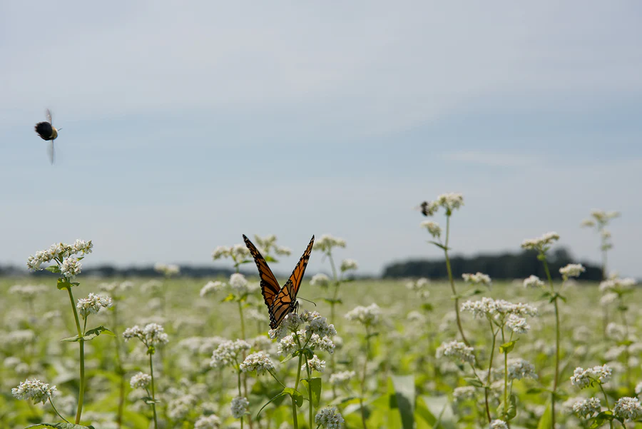 Bob and his farm team carefully select a diverse range of cover crop seeds to plant in the fall, planting them in fields that will lay fallow, at rest for the following year. As the blades and leaves of the cover crops poke through the soil, they serve as tiny solar panels. Through the process of photosynthesis, they’ll collect light energy through sunlight and then convert it to chemical energy that plants can use.